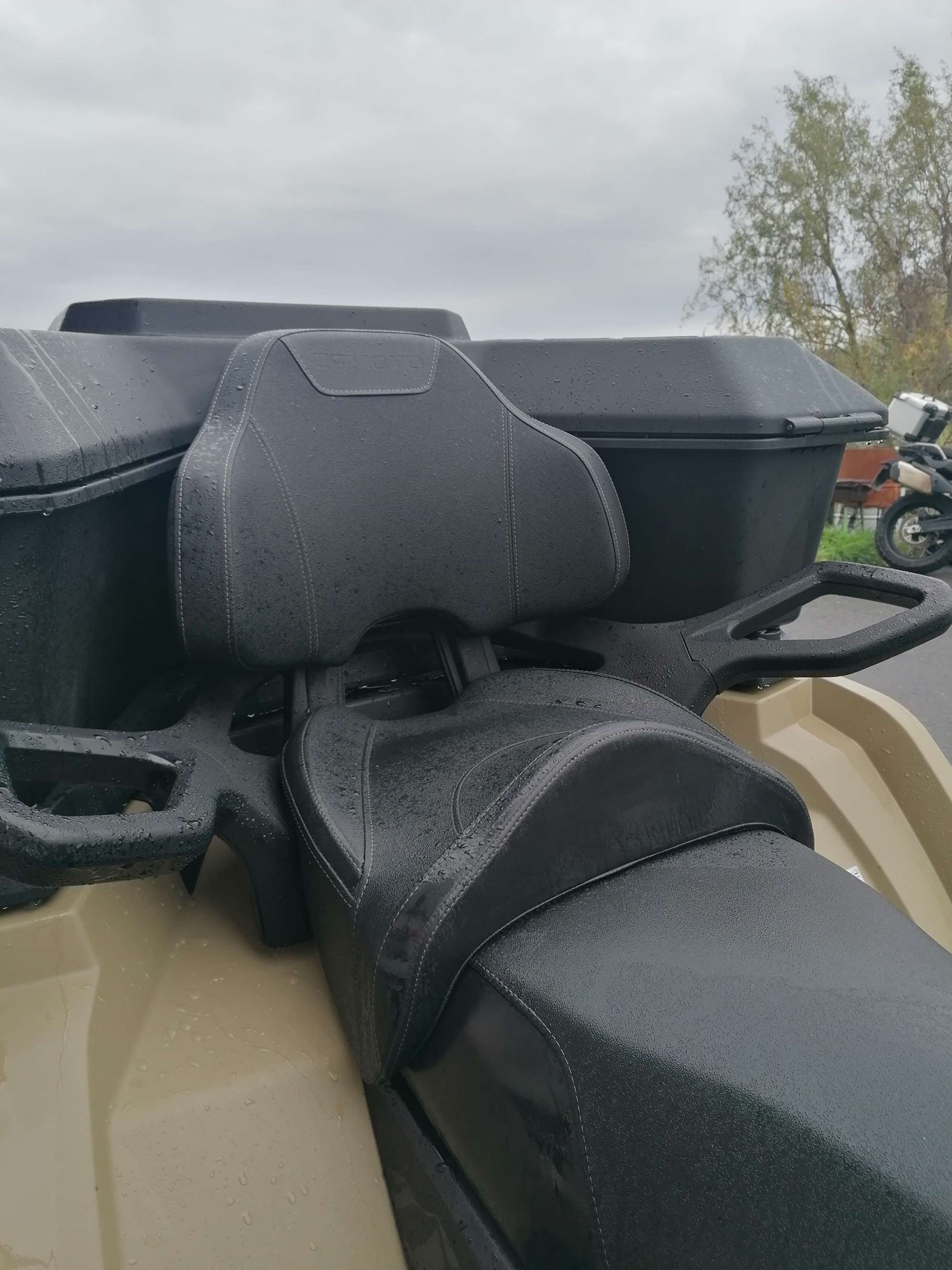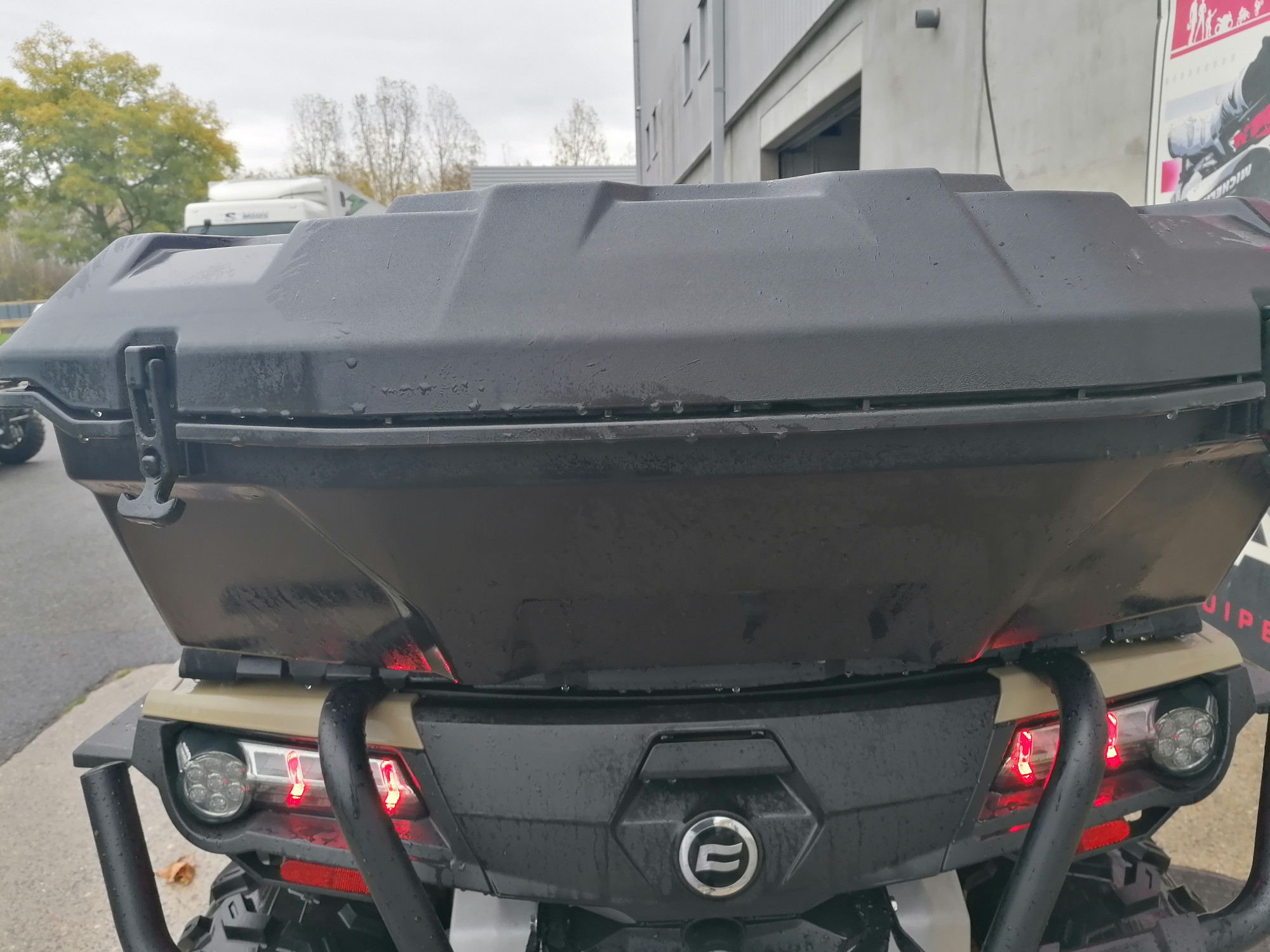 Coffre arrière, saute-vent, bumper avant et arrière, réhausse de rack, selle ainsi que poignées chauffantes, plaque de protection en aluminium et protections de châssis